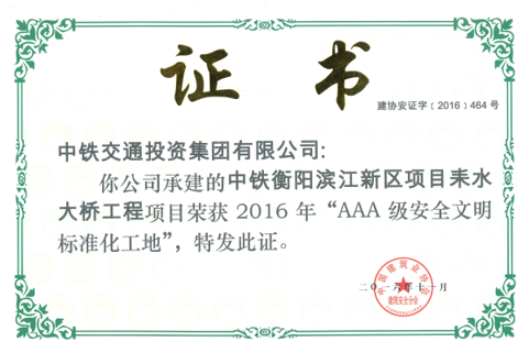 衡陽耒水河大橋榮獲國家級AAA級安全文明標準化工地、全國現場管理星級評價四星級現場